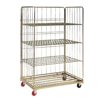 Предназначены для транспортировки сухого белья. Конструкция из нержавеющих стальных прутьев. Одна или две полки в зависимости от модели. Два поворотных и два фиксированных колеса. ОПЦИЯ: дверь и дополнительная полка.